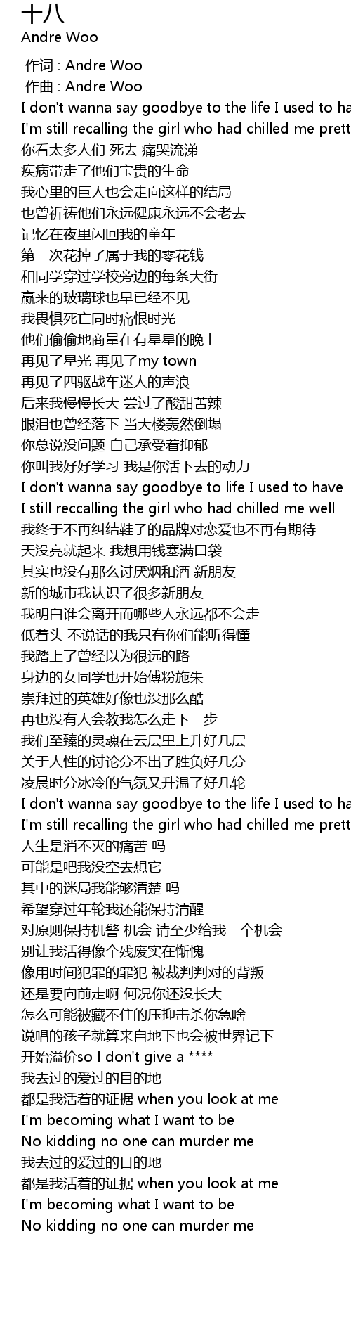 | [00:00.000] | 作词 : Andre Woo |