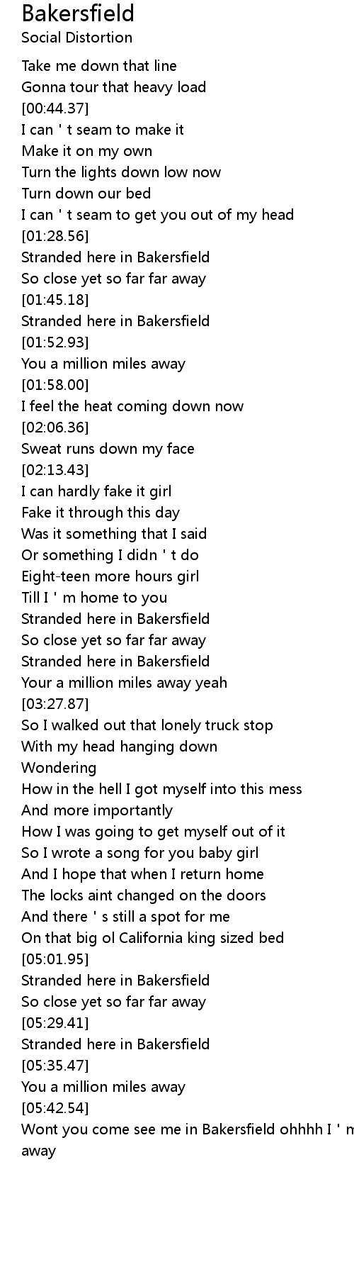 | [05:47.10] | Wont you come see me in Bakersfield ohhhh I m not a million miles away |