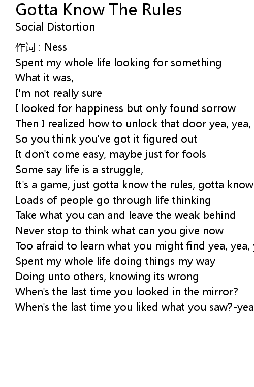 | Song | Gotta Know The Rules |