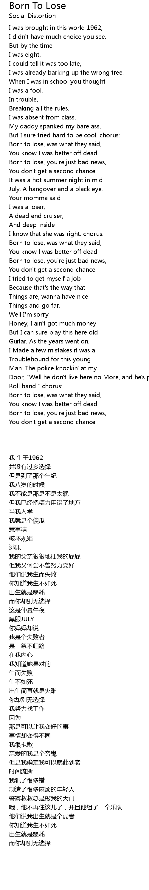 Born to lose, was what they said, |