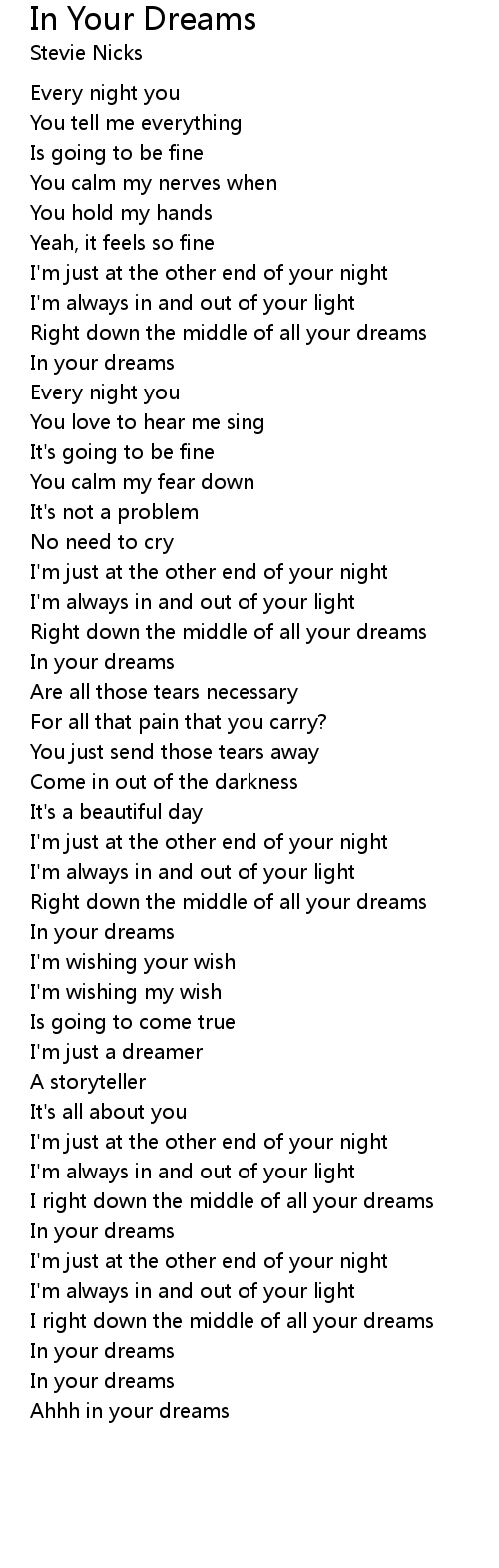I right down the middle of all your dreams |