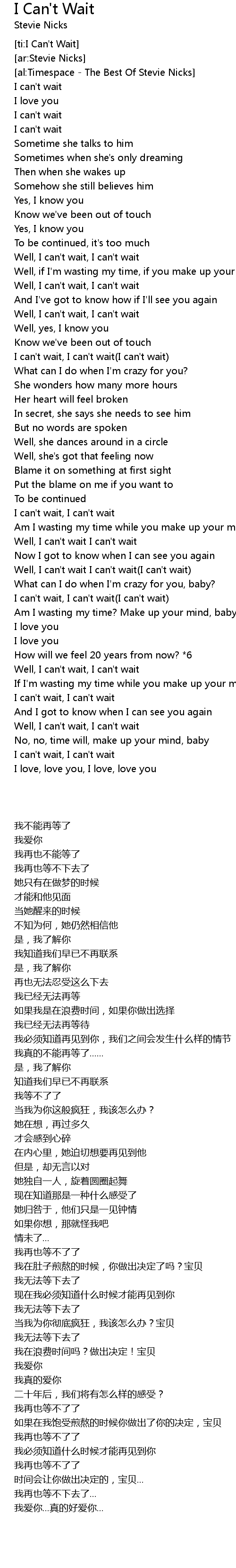 [ti:I Can't Wait] |