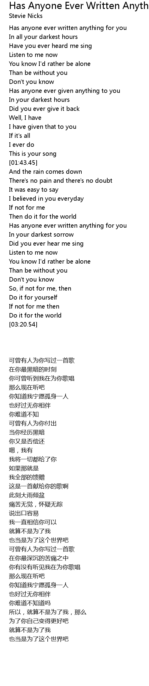 Has anyone ever written anything for you |