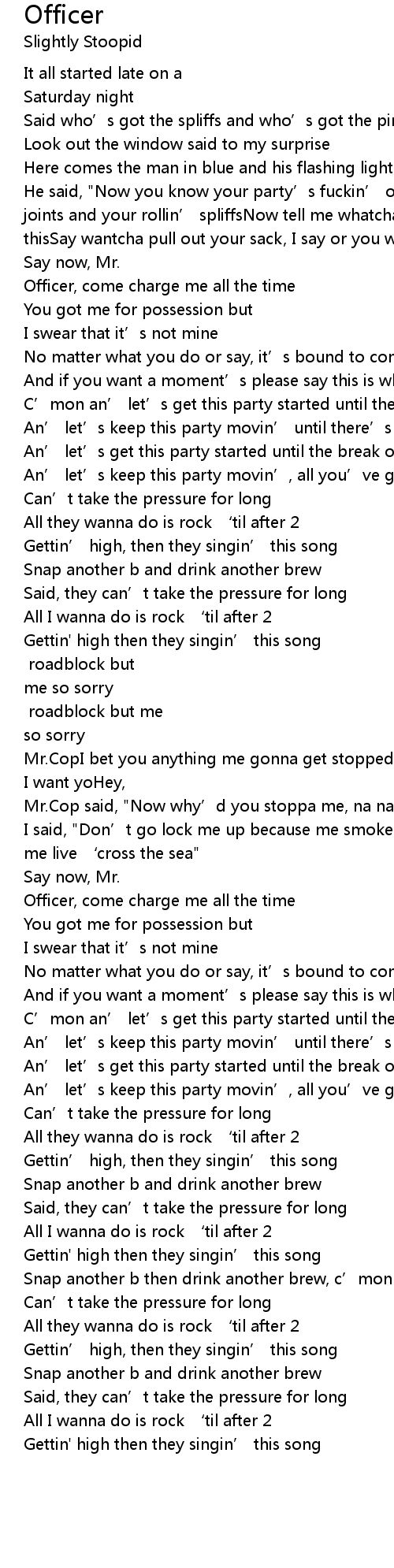 | Mr. CopI bet you anything me gonna get stopped, | |