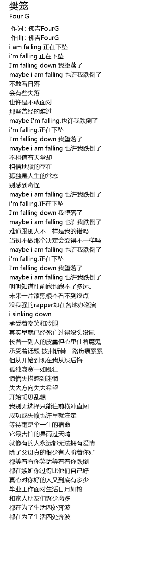 | [00:22.195] | i am falling zhèng zài xià zhuì |