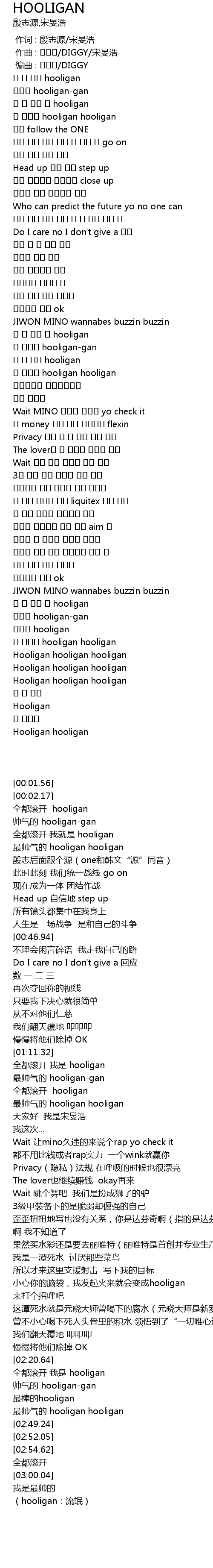 | [03:00.04] | Hooligan |