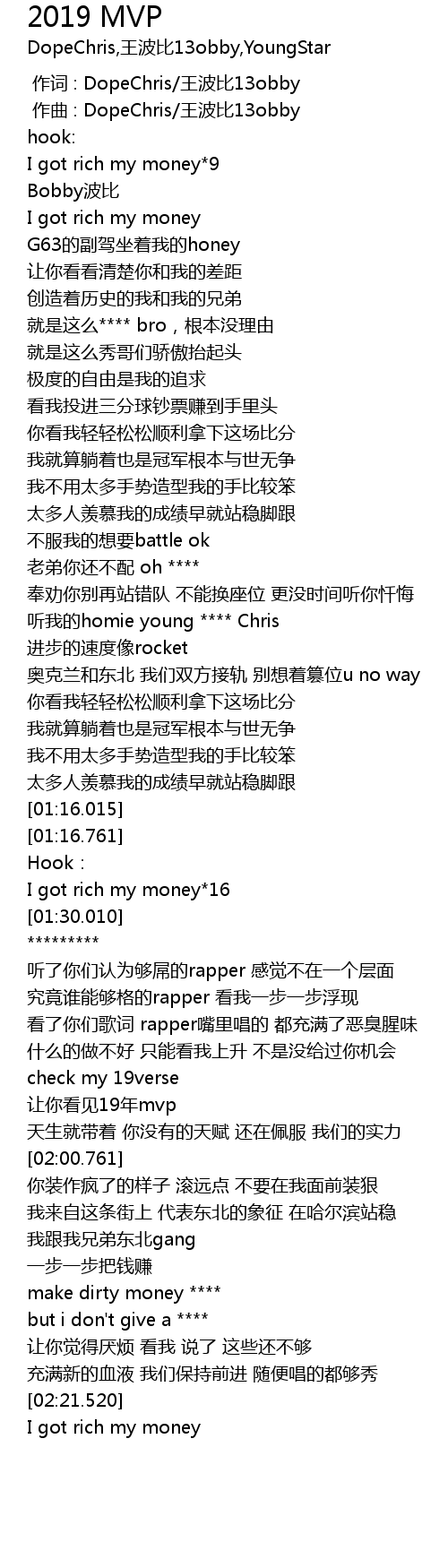 | [00:00.000] | 作词 : DopeChris/王波比13obby |