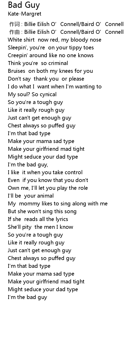 | [01:59.82] | I' m the bad guy |