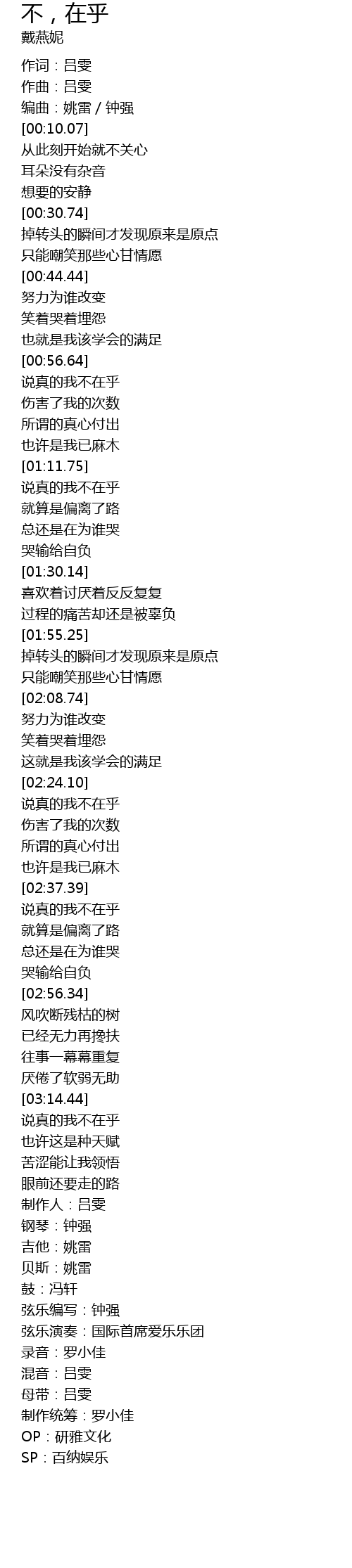 | [02:38.55] | 说真的我不在乎 |