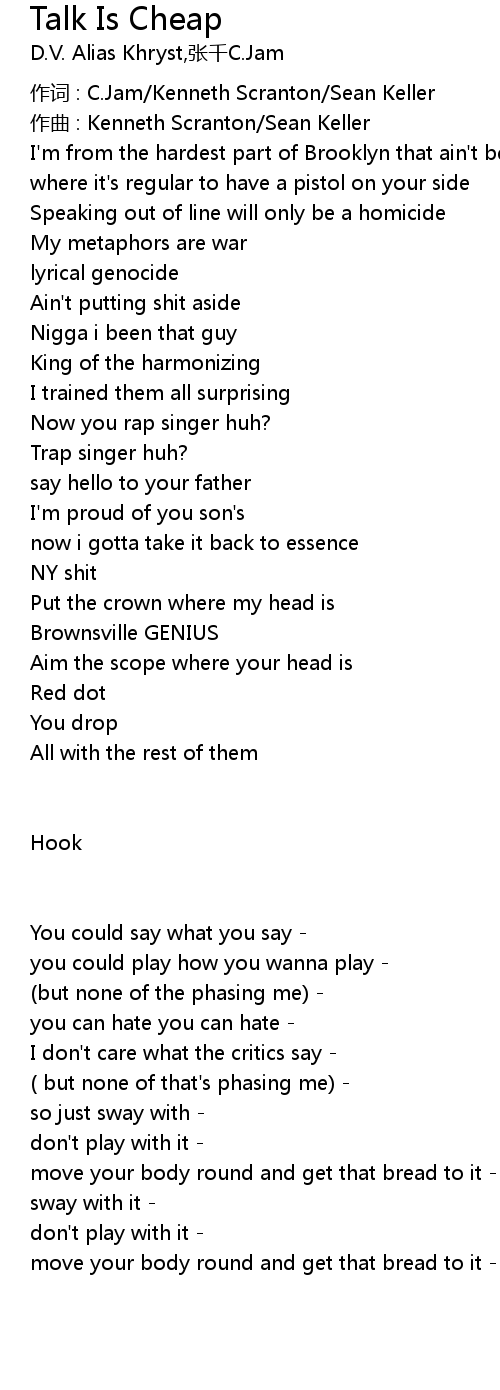 | Album | D.V Alias Khryst feat. C.Jam - Talk Is Cheap |