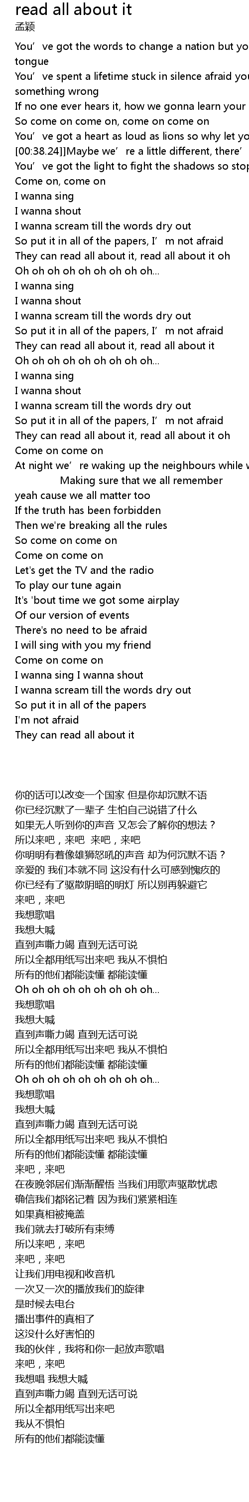 | [02:05.17] | They can read all about it, read all about it oh |