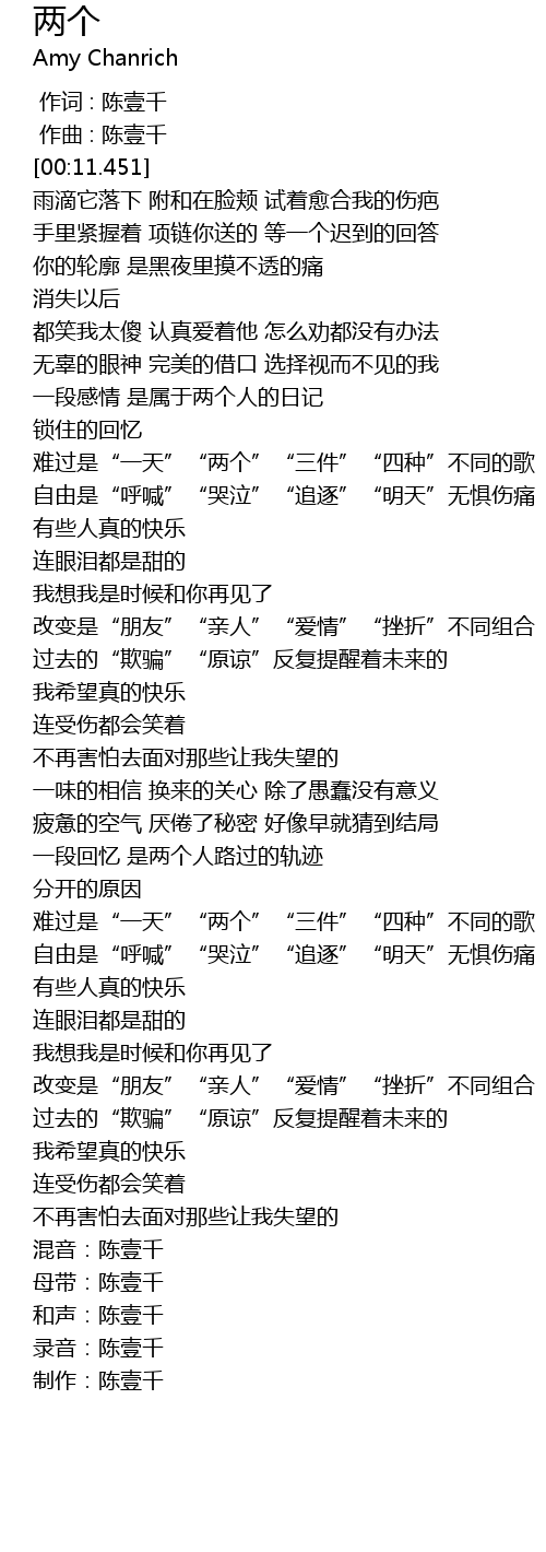 | [00:01.000] | zuò qǔ : chén yī qiān |