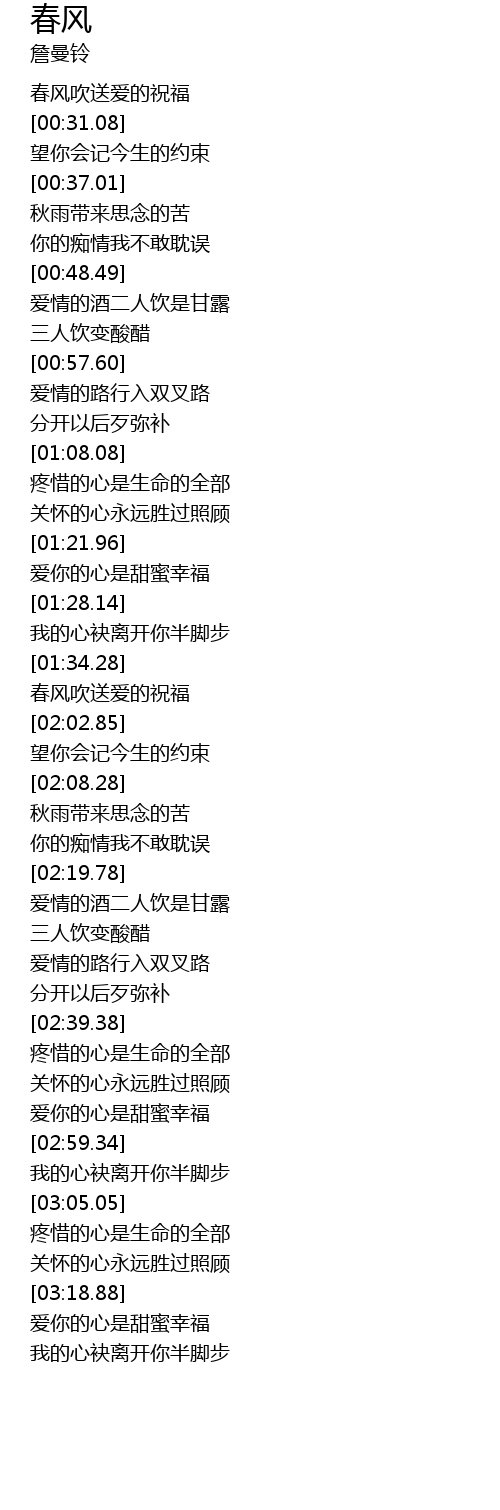 | [00:26.71] | chūn fēng chuī sòng ài de zhù fú |