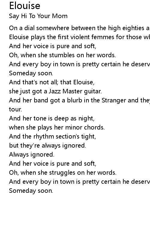 Elouise plays the first violent femmes for those who wake from twelve to two AM. |
