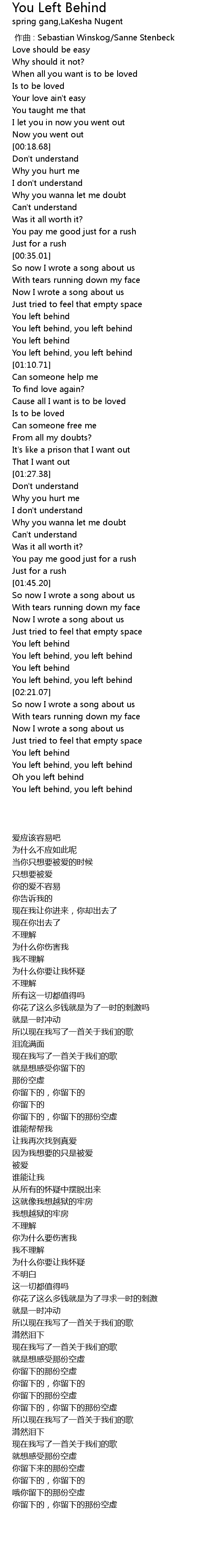 | [00:58.76] | You left behind, you left behind |