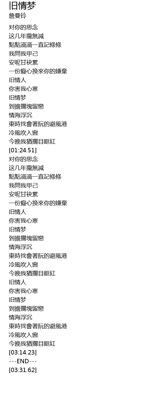 | [01:01.27] | 旧情梦 |