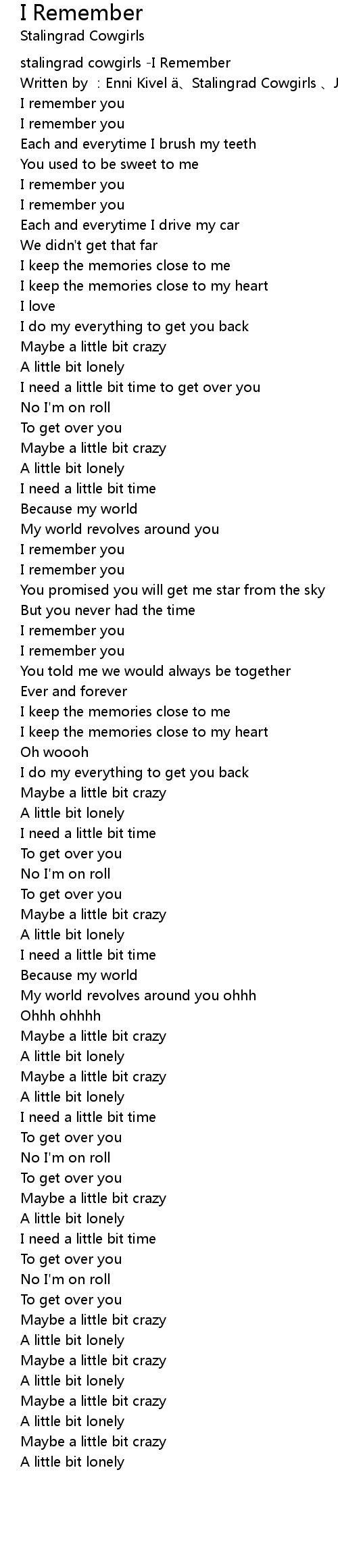 | [00:00.127] | stalingrad cowgirls -I Remember |