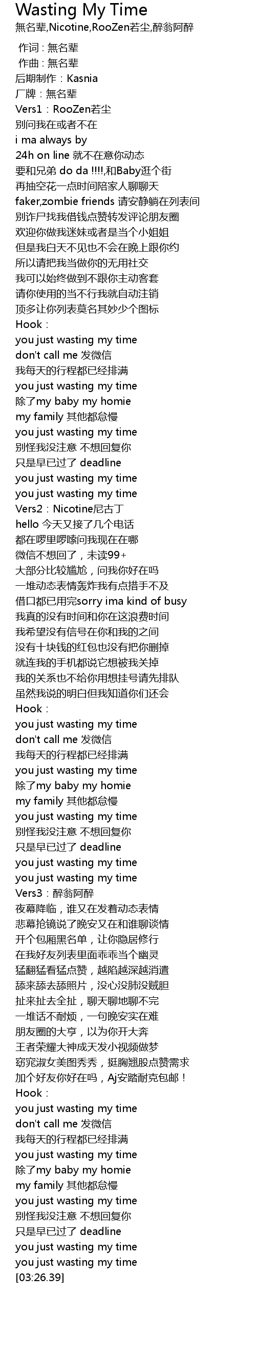 | [01:42.32] | wǒ zhēn de méi yǒu shí jiān hé nǐ zài zhè làng fèi shí jiān |