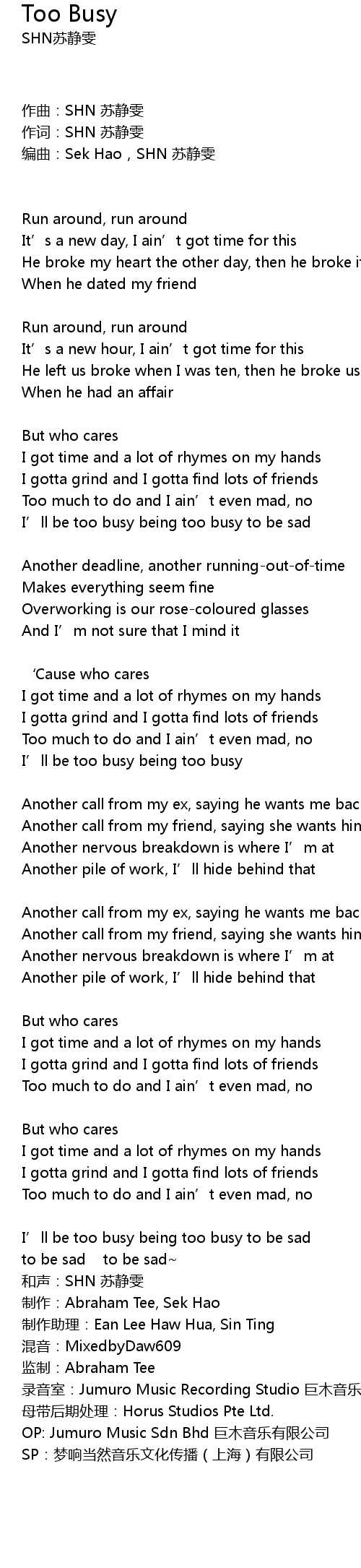 | 作词:SHN 苏静雯 | |