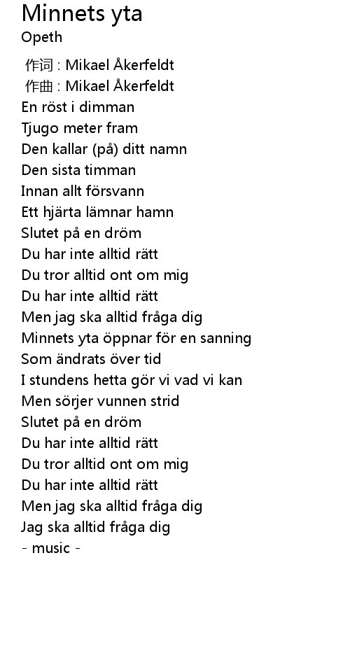 | [00:00.00] | zuò cí : Mikael kerfeldt |