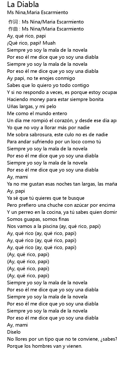 | [00:24.194] | Por eso él me dice que yo soy una diabla |