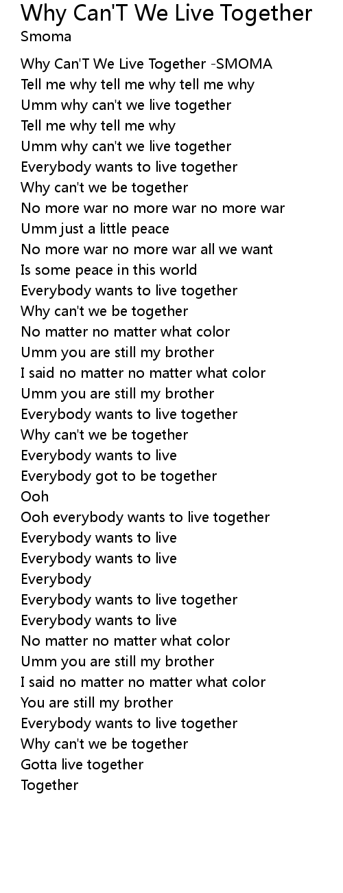 Umm why can't we live together |