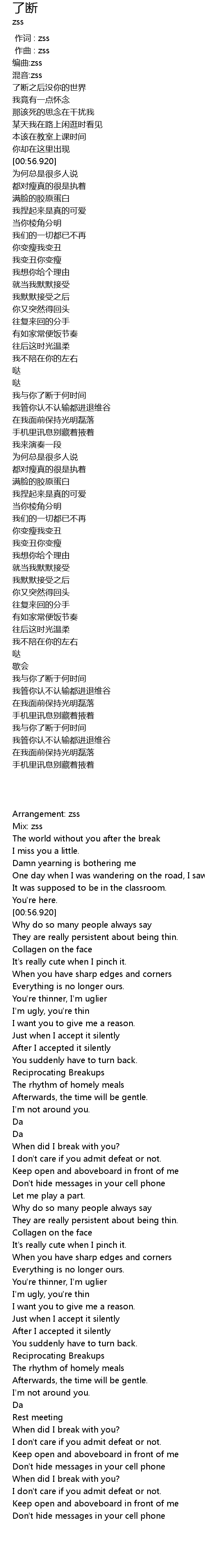 | [00:09.926] | 编曲:zss |