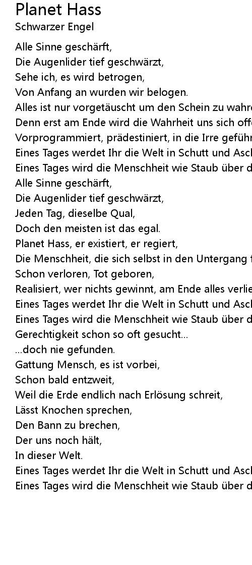 | Planet Hass, er existiert, er regiert, | |