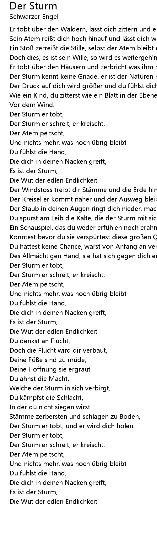 | Der Sturm kennt keine Gnade, er ist der Naturen Held. | |