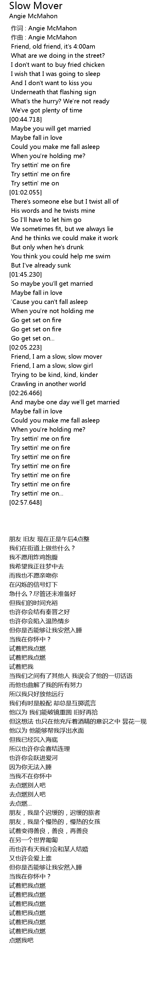 | [02:11.401] | Friend, I am a slow, slow girl |