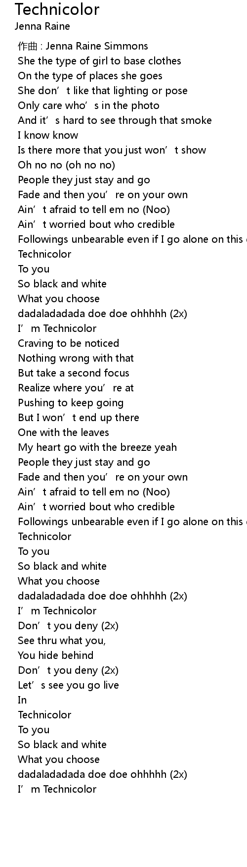 | [00:00.00] | 作曲 : Jenna Raine Simmons |