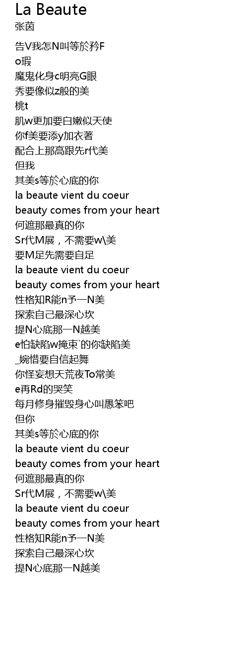 | [00:57.79] | la beaute vient du coeur |