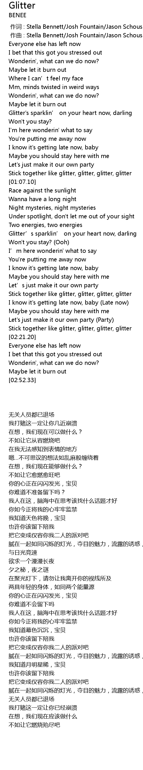 | [01:58.86] | Stick together like glitter, glitter, glitter, glitter |
