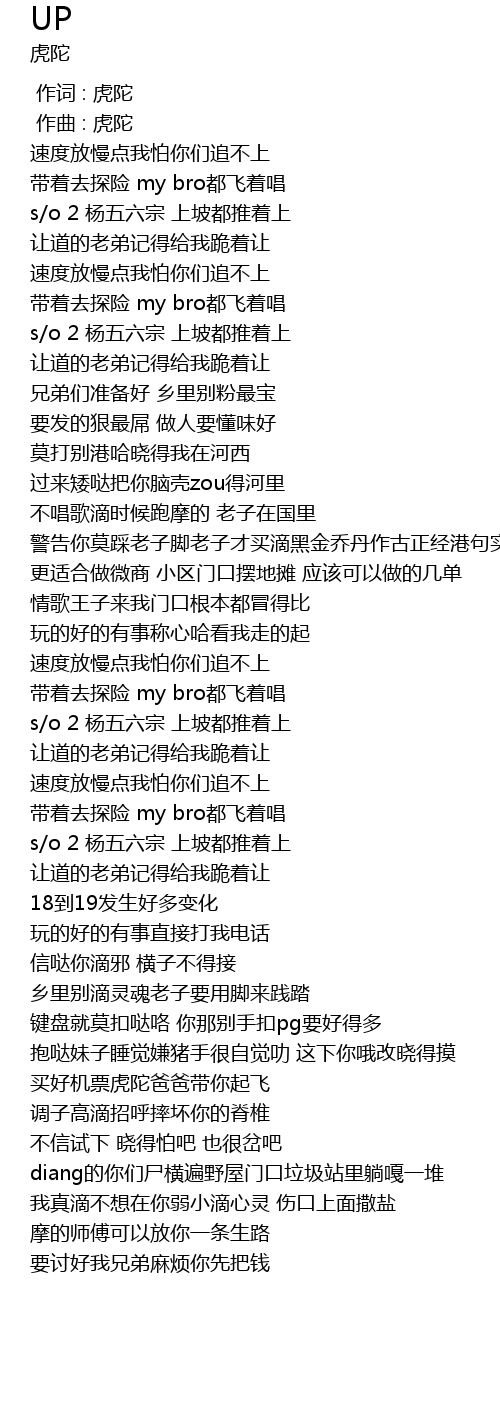 | [00:01.000] | zuò qǔ : hǔ tuó |