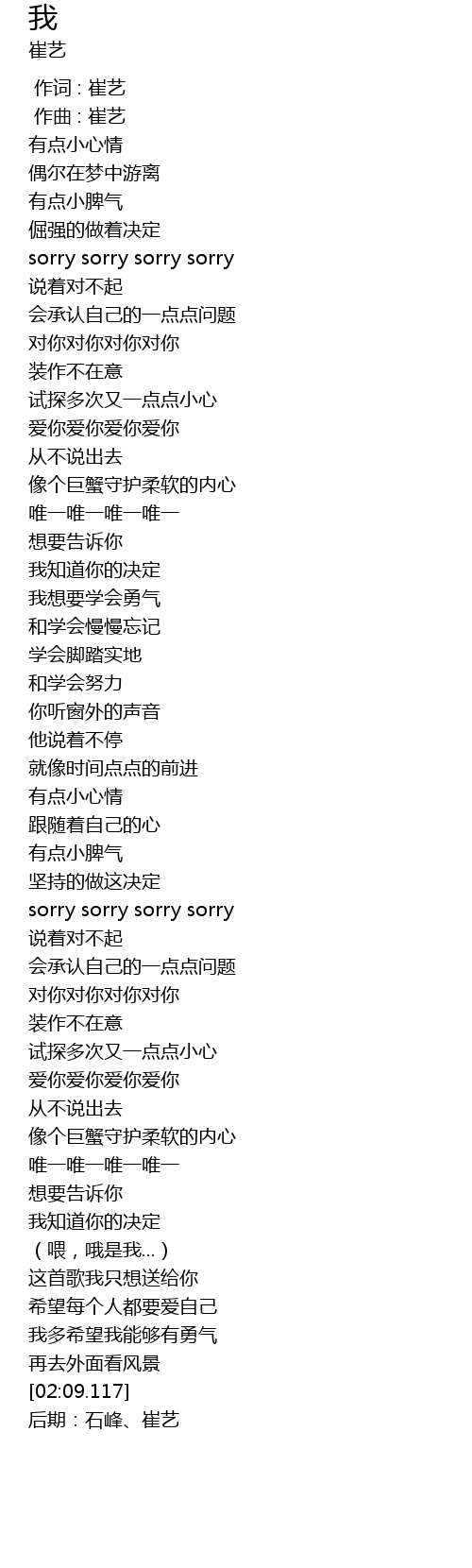 | [00:00.000] | 作词 : 崔艺 |