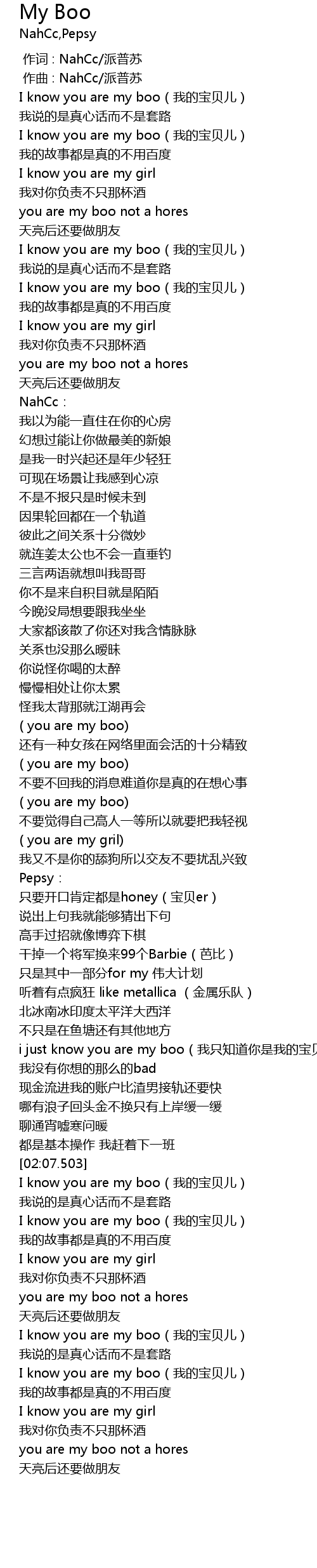| [02:24.440] | I know you are my boo(我的宝贝儿) |