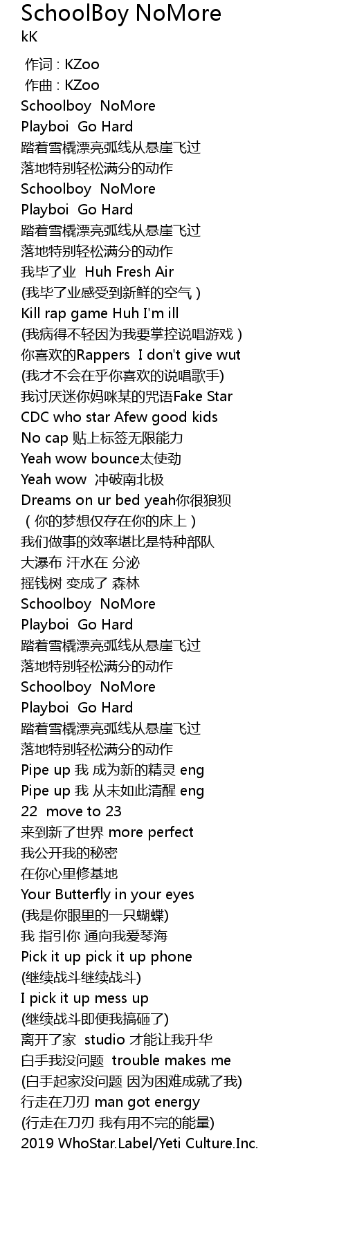 | [00:25.388] | Schoolboy NoMore |