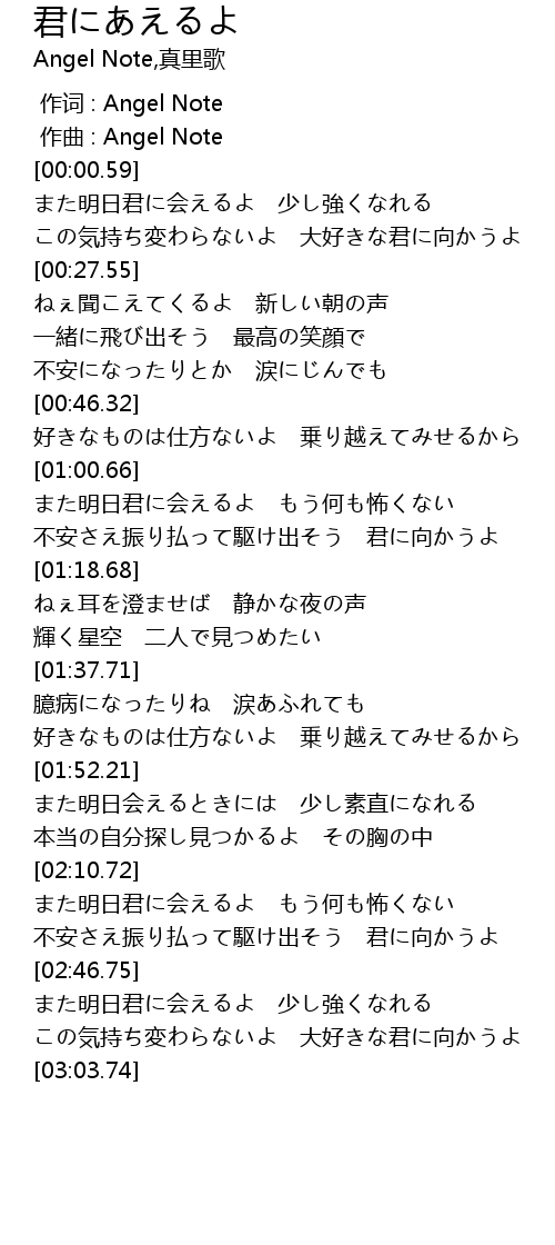 | [01:02.35] | また明日君に会えるよ もう何も怖くない |