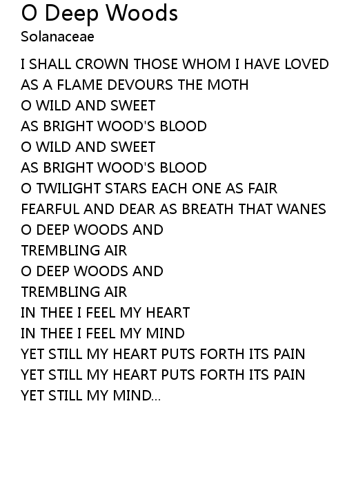| Song | O Deep Woods |