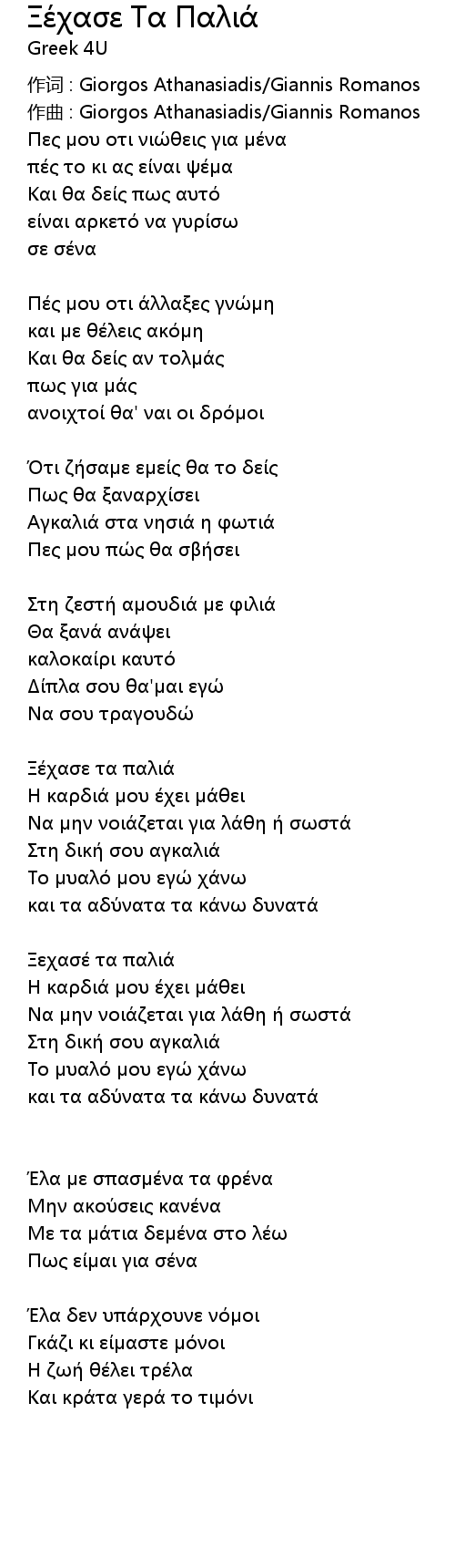 作词 : Giorgos Athanasiadis/Giannis Romanos |