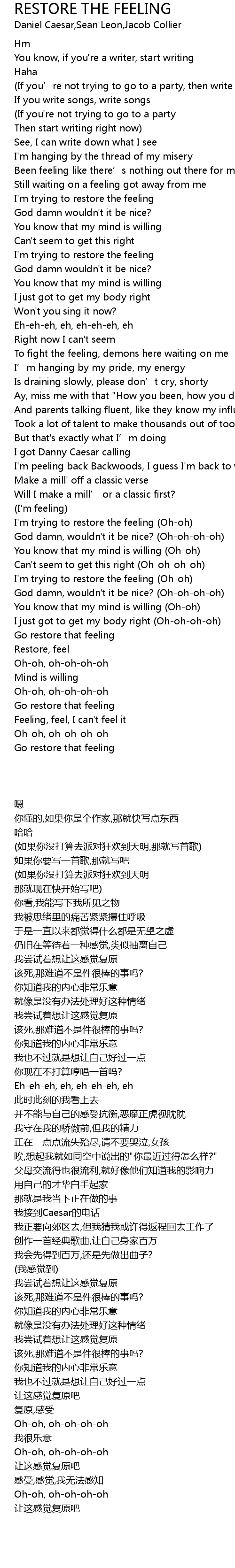 | [02:21.39] | I'm trying to restore the feeling (Oh-oh) |