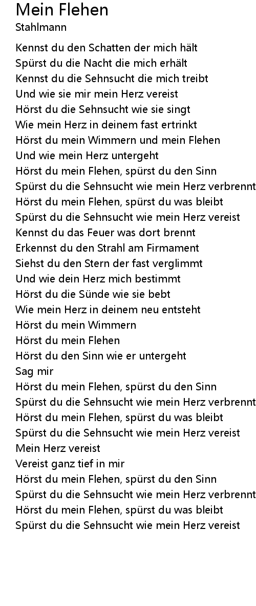 Spü rst du die Sehnsucht wie mein Herz vereist