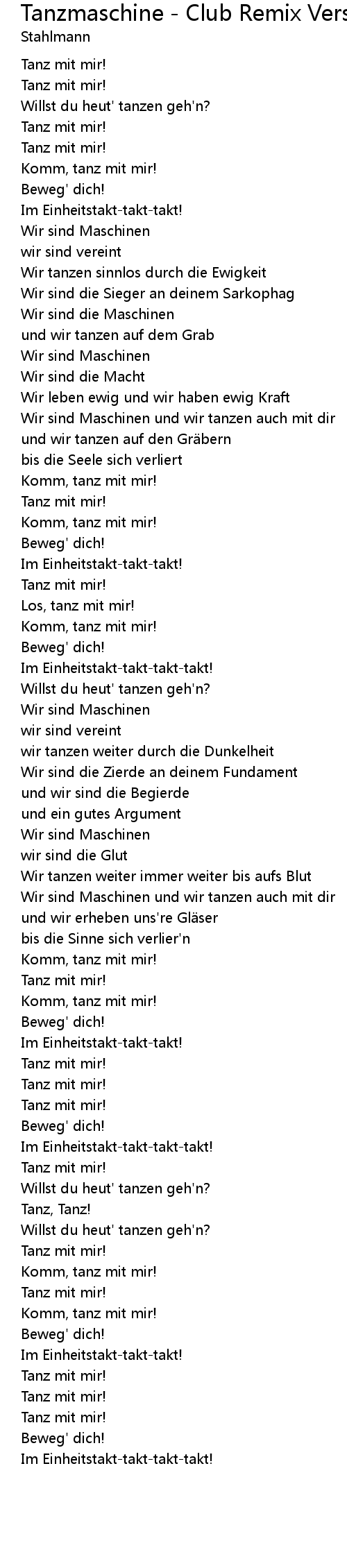 | Wir sind Maschinen und wir tanzen auch mit dir | |
