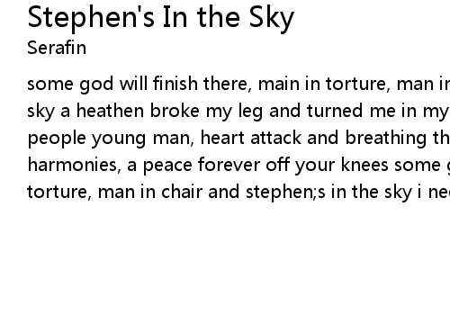 | Song | Stephen's In the Sky |