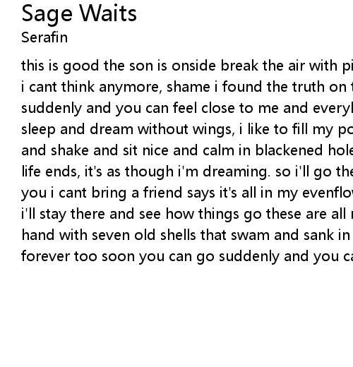 this is good the son is onside break the air with pieces of hide shame it broke i cant think anymore, shame i found the truth on the floor and you can go suddenly and you can feel close to me and everybody's gotta drown i like to sleep and dream without wings, i like to fill my pockets with things that glow and shake and sit nice and calm in blackened holes where slaves have no arms my life ends, it's as though i'm dreaming. so i'll go there and i'll stay there but you i cant bring a friend says it's all in my evenflow, so i'll go there and i'll stay there and see how things go these are all my rupturing cells in my hand with seven old shells that swam and sank in so many moons and cast our dear forever too soon you can go suddenly and you can speak openly |