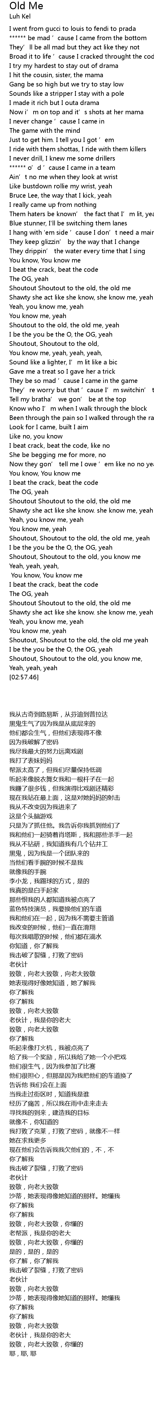 | [02:22.83] | Shoutout, Shoutout to the old, you know me |