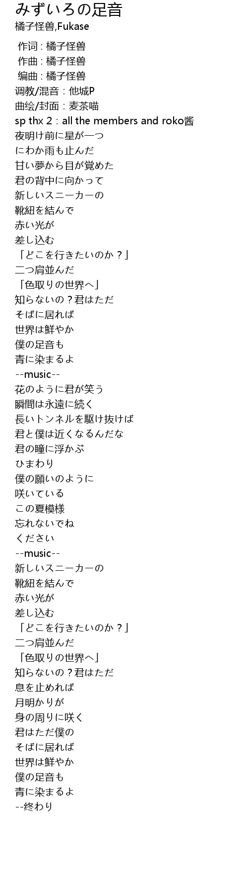 | [00:00.000] | 作词 : 橘子怪兽 |