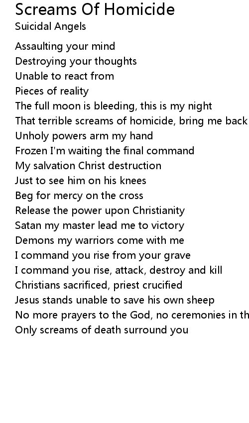 That terrible screams of homicide, bring me back to life |