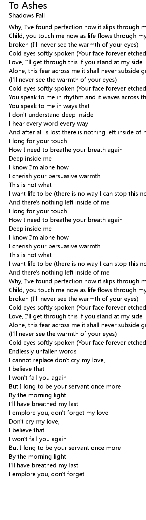 Child, you touch me now as life flows through my hands gray skies have been broken (I'll never see the warmth of your eyes) |