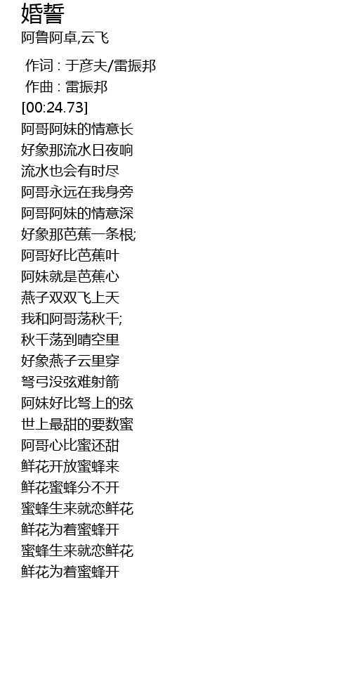 | [00:00.00] | 作词 : 于彦夫/雷振邦 |